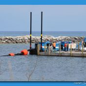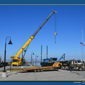 A cold wind blowing out of the north is just what some wish for first thing in the morning, not me. The dredge arrived around 3:45 pm. It’s really nice looking. It will be placed in the water tomorrow morning. Biscuit and I will be there.